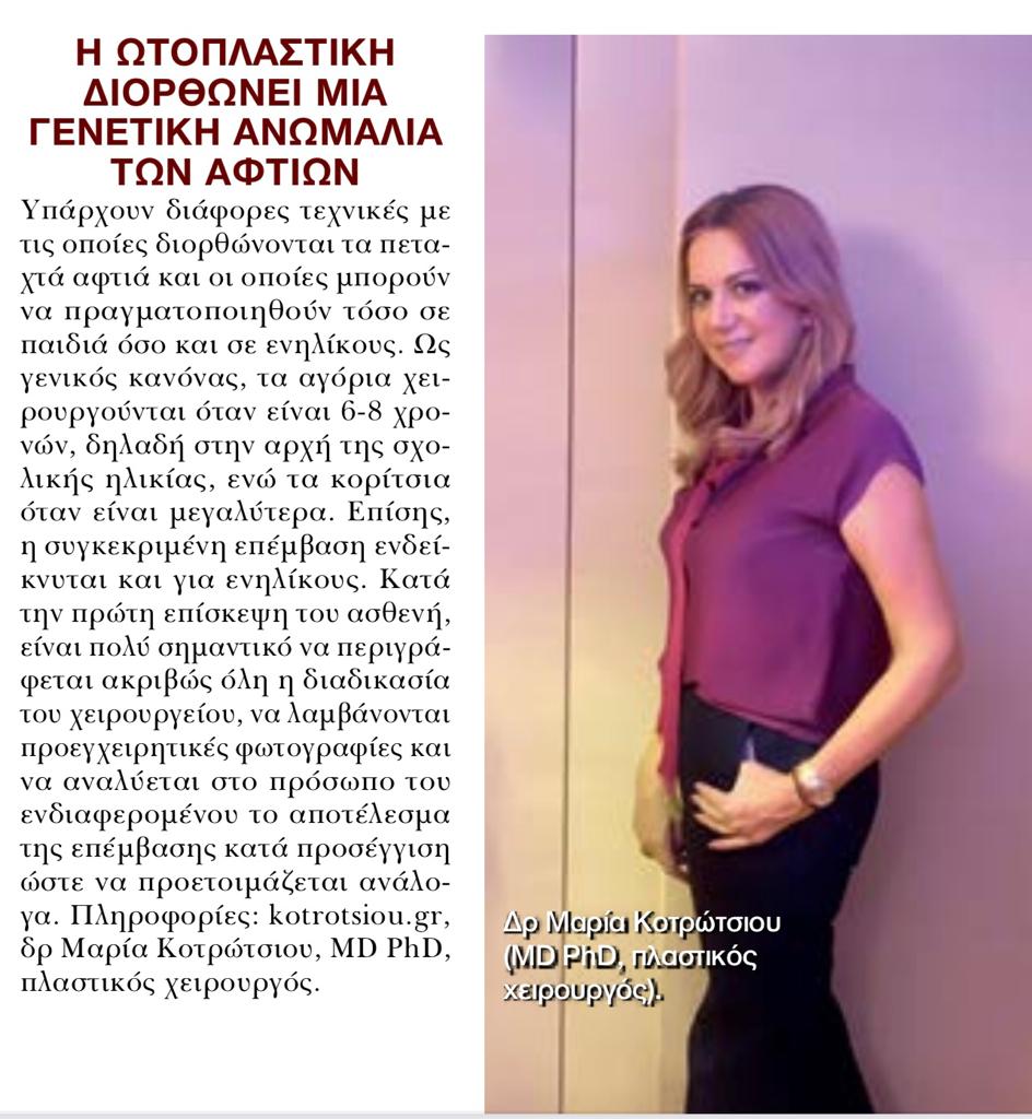 Η dr Μαρία Κοτρώτσιου MD PhD αναλύει την ωτοπλαστική στο περιοδικό @hello στο τεύχος ΙΑΝΟΥΑΡΙΟΥ στις 13/1/ 2021