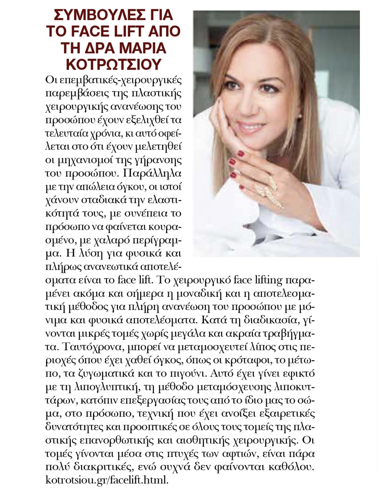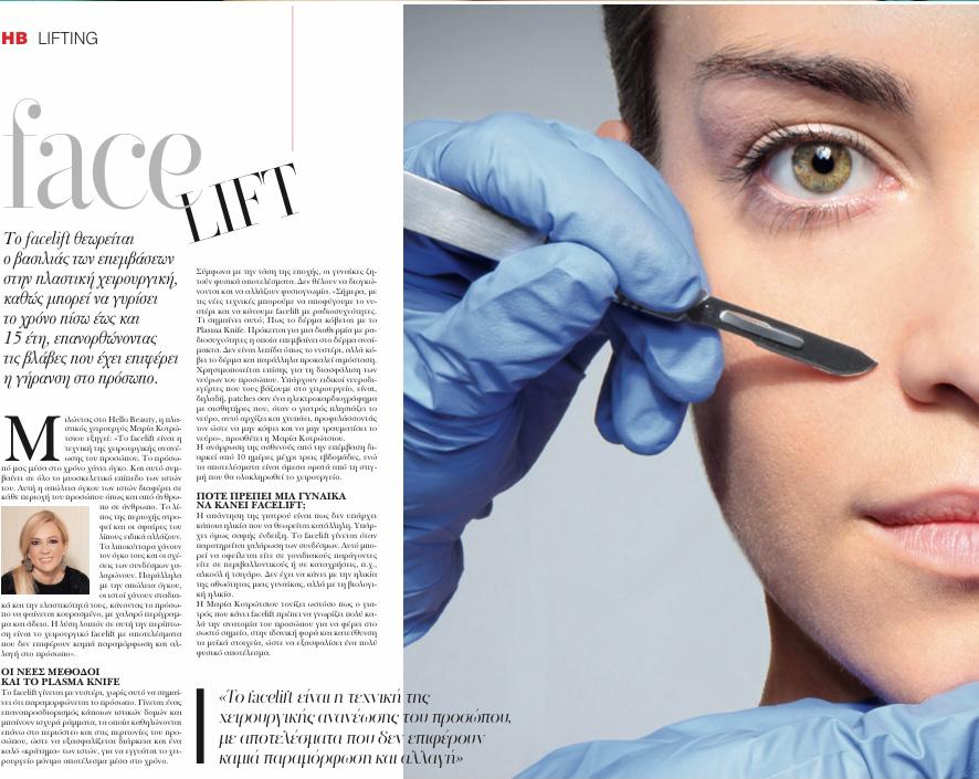 Η dr Μαρία Κοτρώτσιου MD PhD δίνει συμβουλές για το facelift στο περιοδικό Hello στο τεύχος Μαΐου στις 26/5/2021.