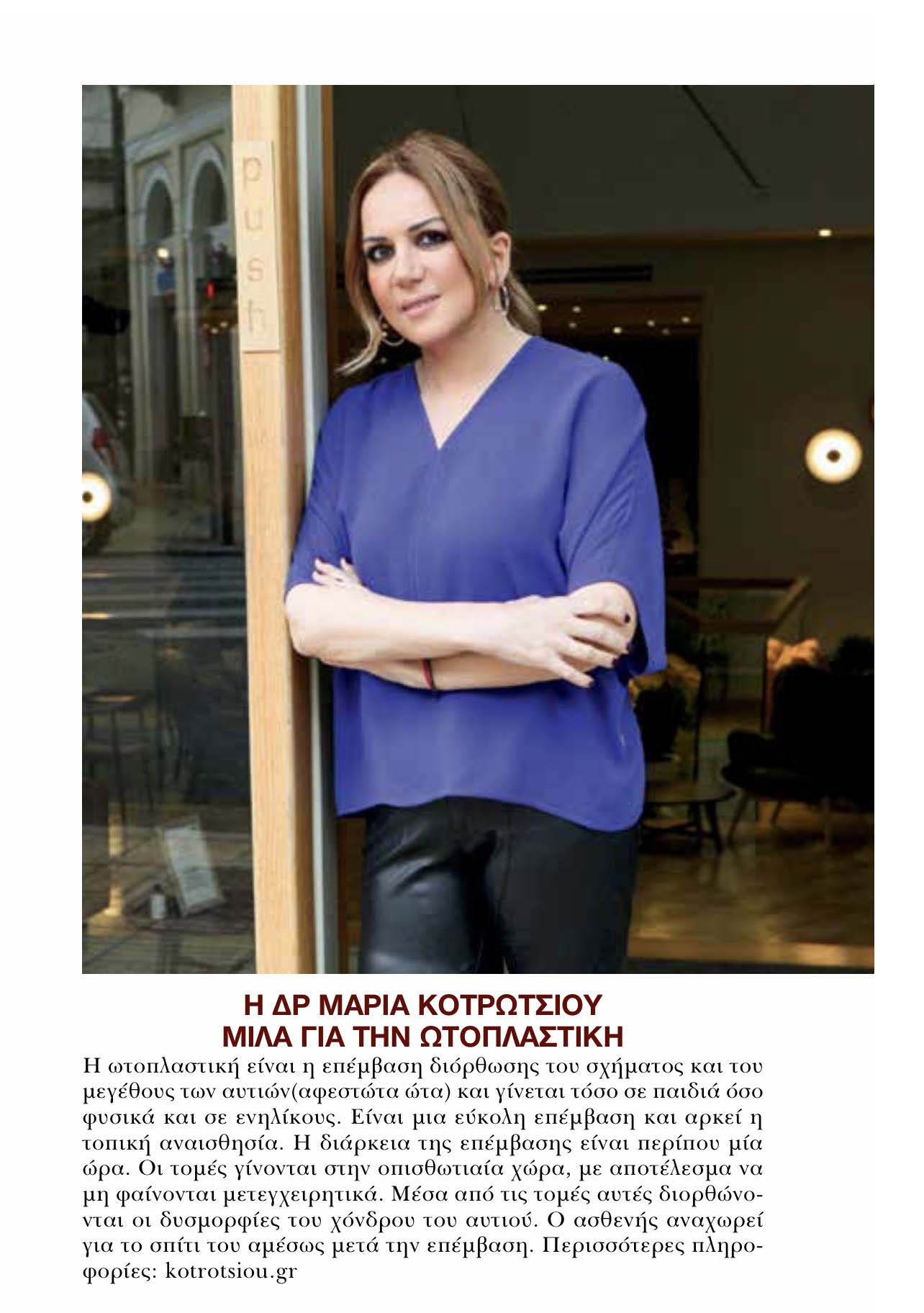 Η dr Μαρία Κοτρώτσιου MD PhD μιλάει την ωτοπλαστική στο περιοδικό Hello στο τεύχος Μαΐου στις 5/5/2021.